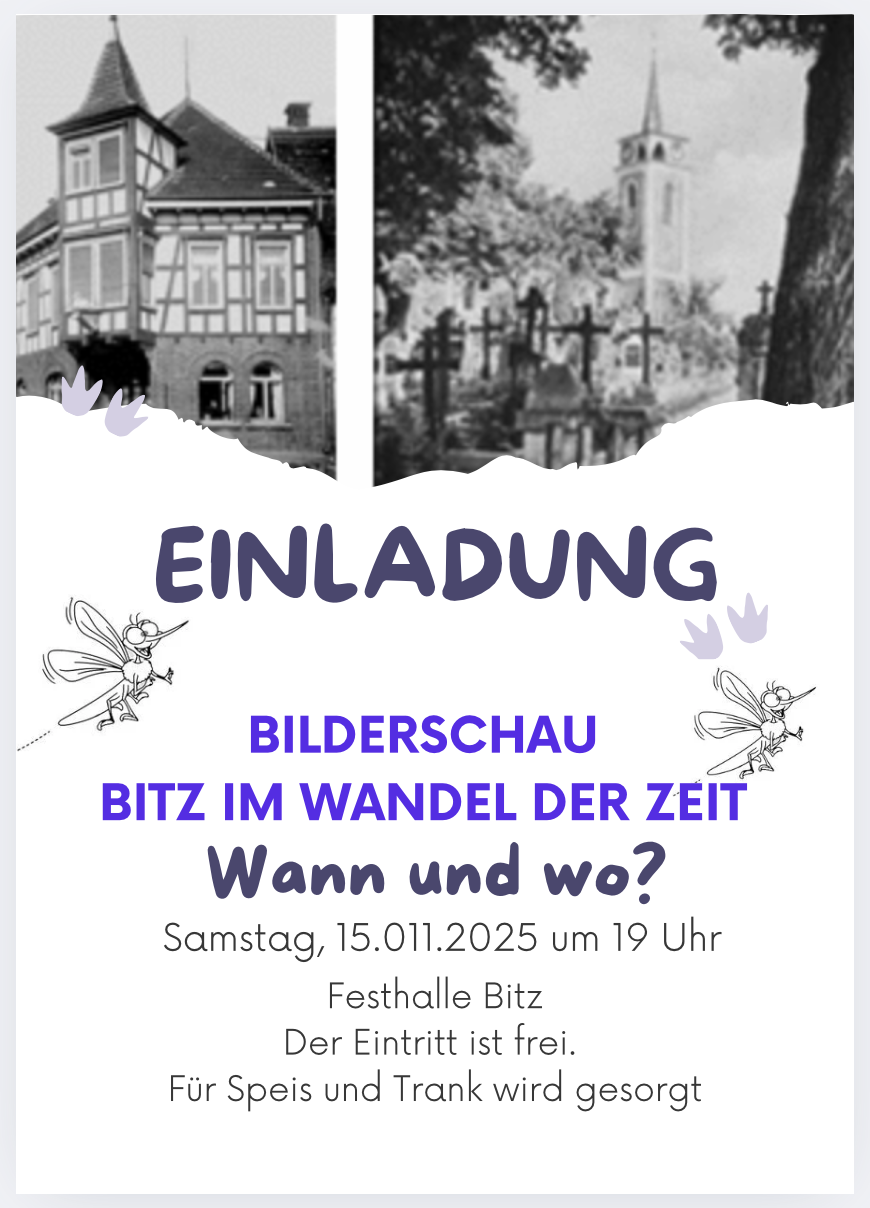 Nicht nur für die ältere Generation gibt es hier ein Wiedersehen mit altvertrauten Ansichten, sondern auch für die junge Generation, und ganz besonders für neu zugewanderte Mitbürger ist dies die Gelegenheit, unser heutiges Bitz neu zu erleben.