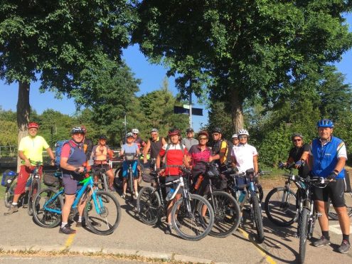 Zurück geht es über die Fürstenhöhe zum Benzinger Wasserturm. Dort wird das 100jährige Jubiläum mit Bewirtung gefeiert und der Wasserturm kann besichtigt werden. Übers Harthauser Tal fahren wir zurück nach Bitz.
