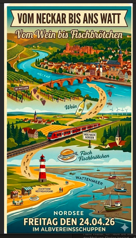 Unter dem Motto „Vom Neckar bis ans Watt“ laden wir herzlich in den Albvereinsschuppen ein.