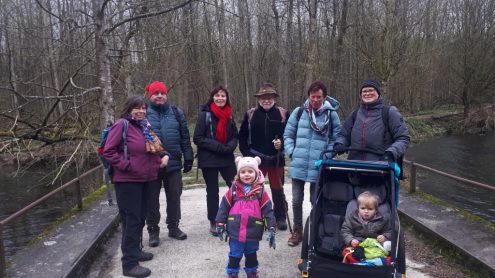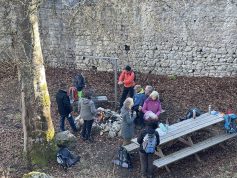 Trotz kalten und windigen Wetters fanden sich immerhin sieben Wanderer (+ zwei im Kinderwagen) am Bitzer Rathaus ein, um mit Thomas Mohr die Gegend um Rechtenstein zu erkunden. Vom Wanderparkplatz bei Oberwilzingen ging es durch das idyllische Schelmental direkt zum Naturschutzgebiet an der Braunsel. Diese ist einer der kürzesten Nebenflüsse der Donau und mündet in diese nach gerade einmal 920 Metern.