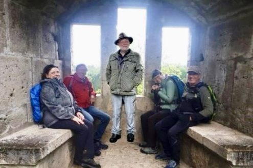 Dort warteten die Kletterer – einige von ihnen hatten schon die Ruine erkundet.