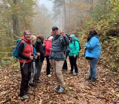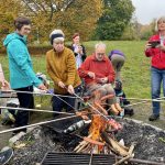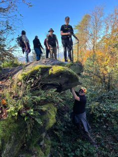 Am Sonntag – endlich – hatten wir schönes sonniges Wetter. Eine kleine Gruppe machte sich auf zum Schuh-Outlet ins nahe gelegene Hauenstein. Die übrigen Teilnehmer fuhren nach Klingenmünster, um eine Wanderung bei der Burg Landeck zu machen. Hier gab es viele Esskastanien zu sammeln – es ist DER Platz, zu dem auch die Einheimischen zum Sammeln kommen, erklärte Stephan.