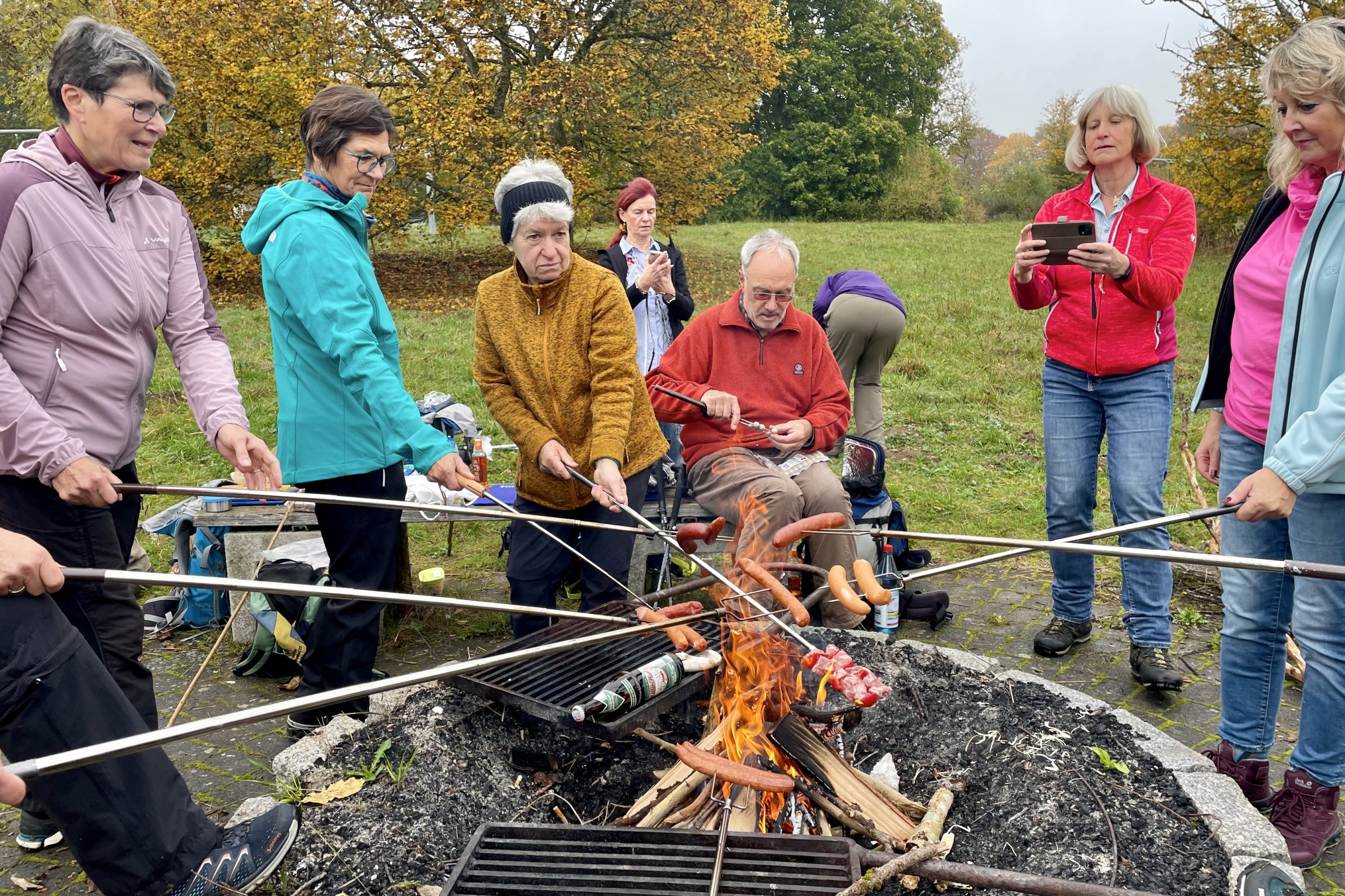 Es dauerte nicht lange, bis die Grillwürste über dem Feuer brutzelten und auch sonst kamen so allerlei Köstlichkeiten aus diversen Rucksäcken.